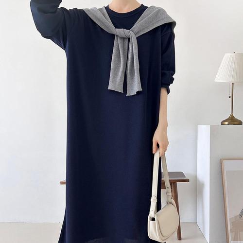 [옷자락] [시즌오프]가을등원룩 빅사이즈 골지 라운드 스판 롱원피스_5