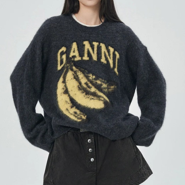 25 FW 가니 여성 블랙 보트넥 미니 드레스 231144F052037