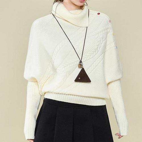 꽈배기 가오리핏 레이어드 터틀넥 니트 여성 스웨터 WFLX666