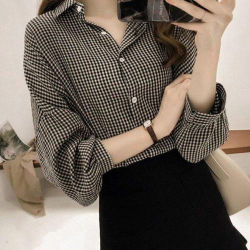 [RGL7433R]가오리핏 여성 체크셔츠 회사원 출근룩 코디