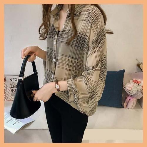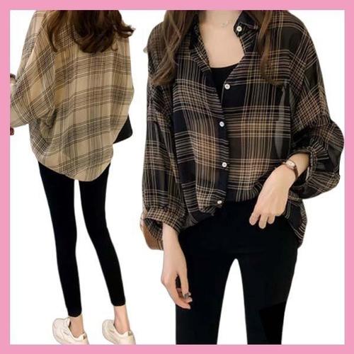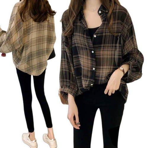 [모노무드]MNO 체크셔츠상의 가오리핏 오버핏 캐주얼셔츠 여자셔츠 여성블라우스 캐주얼 사계절 긴팔셔츠