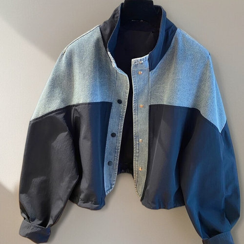 보니제이 / 2컬러 배색 데님 포인트 가오리핏 박시한 가을 캐주얼