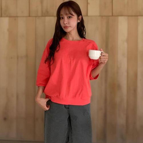 [옷자락]여자 캐주얼 코튼 무지 절개 가오리핏 7부 맨투맨