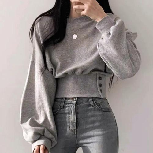 여자 양기모 크롭 박시핏 퍼프 가오리 맨투맨