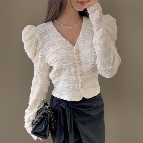 COSYEVNO 중년 엄마 긴팔 톱 가을 라운드넥 자수 브이넥 배색 스타일리쉬한 루즈핏 캐주얼 숏 버튼 니트 CXJzzs-08