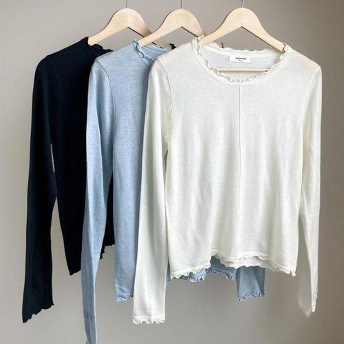 TLB V 여성 브이넥 골지 니트 티셔츠 봄가을 슬림핏 긴팔 이너