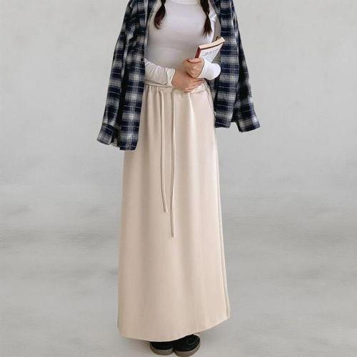 [옷자락] 여성 뒤트임 A라인 무지 밴딩 롱스커트 가을용
