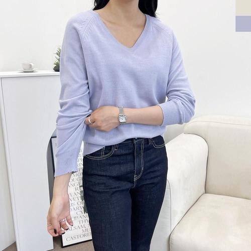 코디 여자니트티 여성니트 가을 브이넥 기본핏 봄 롱 WFKXZQX