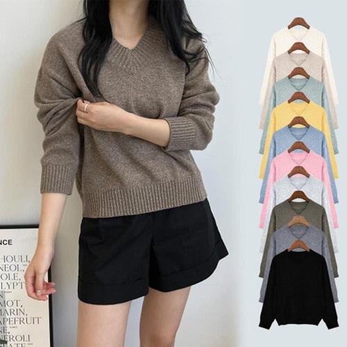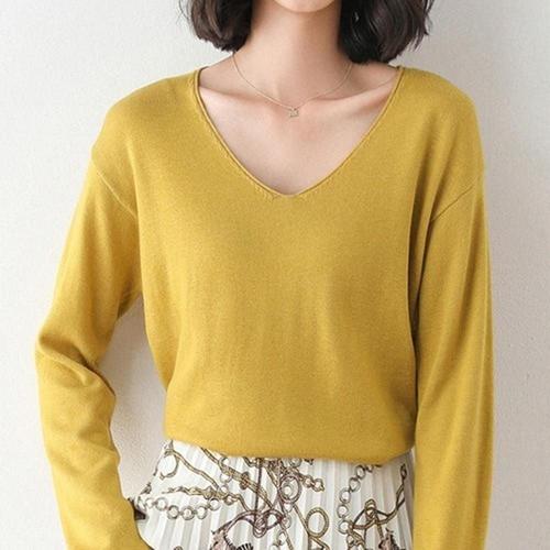 베이직 롱니트 여자니트티 가을 브이넥 스웨터 모임 WFKXZOY