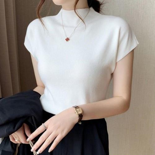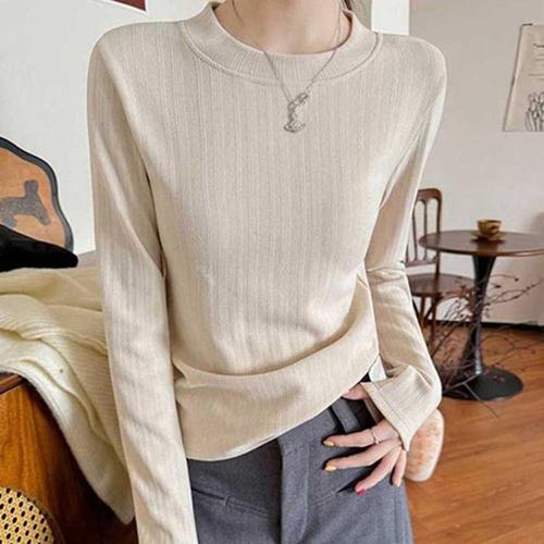 신상 티셔츠 여자니트티 기본핏 라운드 가을 모임 롱 WFKXZTU