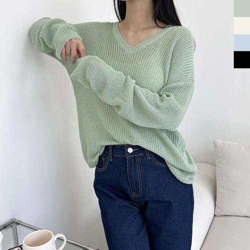 브이넥 롱니트 라운드 가을 니트티 오버핏 오피스룩 WFKXZS5