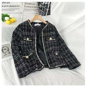 Latium HC06 숏짧은 크롭 주머니 수술 체크 가을 겨울 트위드쟈켓 T2541jk02B