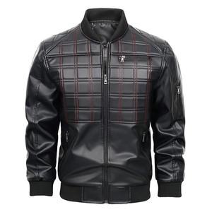 남성용 캐주얼 체크 무늬 가죽 재킷, 야구 코트, 스탠드업 칼라, 용수철 가을, 2024 신상