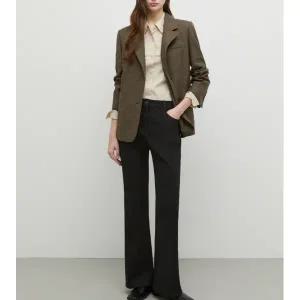 2025 가을 신상 여성 캐주얼 패션 심플 체크무늬 수트 칼라 긴팔 수트 재킷 + 와이드 팬츠