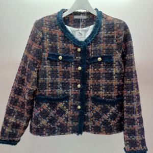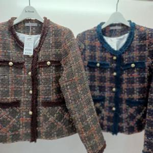 라티움 HC34 트위드자켓 가을 초겨울 띠 배색라인 노카라 체크 트위드 자켓 T2541kk02