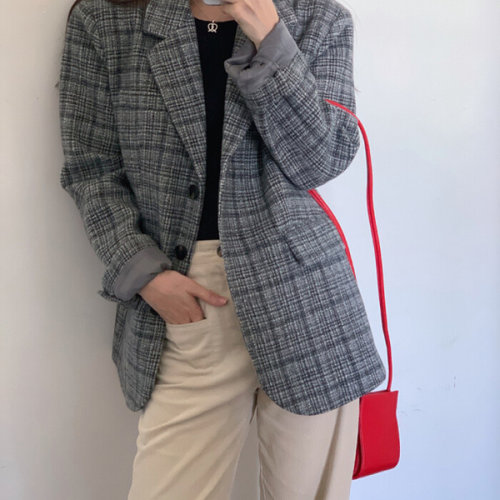 남성 정장자켓 트위드 정장 코트 가을 오버사이즈 패드 재킷 숏 하운드투스 체크 상의 MF3