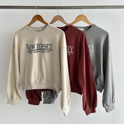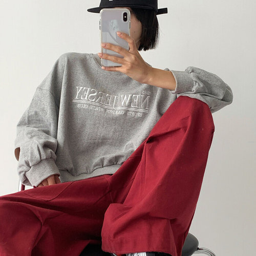 [옷자락] 여자 자수긴팔티 라운드 세미크롭 박스핏 가을 맨투맨