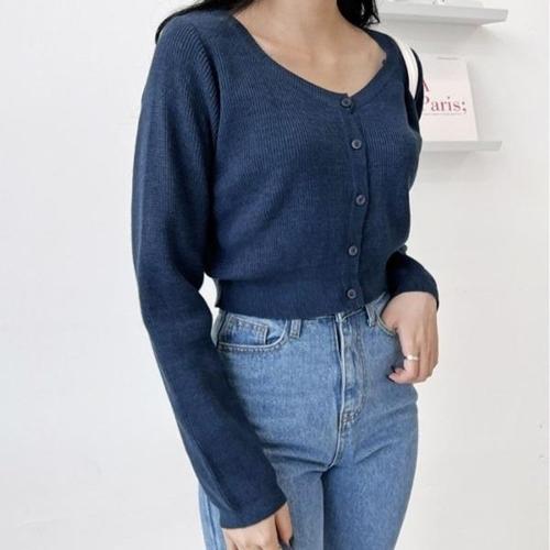 [엄지척]다이아넥 여성 니트 가디건 봄 가을 여자 크롭 니트티_19807232_667501