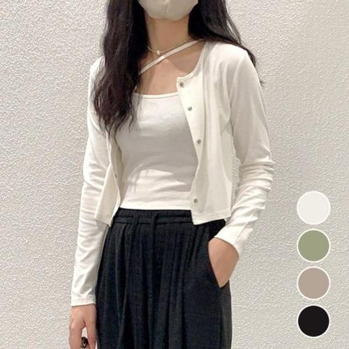 [엄지척]봄 가을 여성 크롭한 기장 나시 티셔츠 가디건 세트_19808081_667501