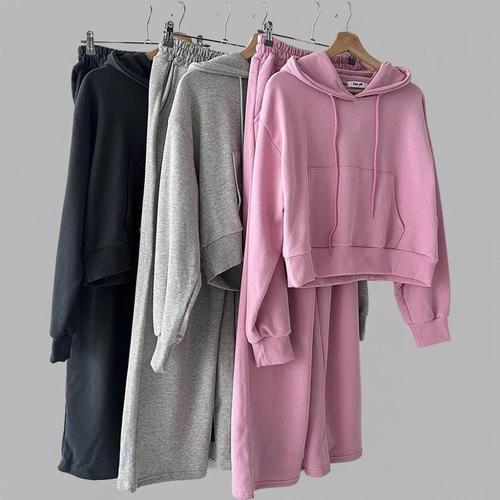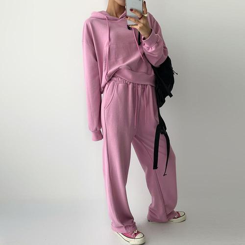 |KSD2773|여성 크롭 후드티와 와이드팬츠 가을 트레이닝 세트