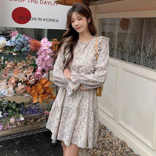 면 여성원피스 원피스 대학생 롱원피스 봄 가을 슬림 WFKXZ7K