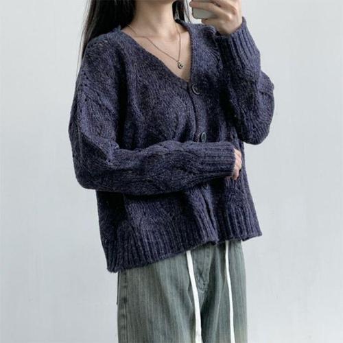 [신상오픈런]여성 다이아 패턴 가을 브이넥 루즈핏 니트 가디건