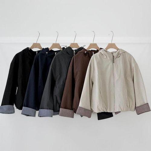 [신상오픈런]여성 롤업 후드집업 배색 워크자켓 가을 점퍼