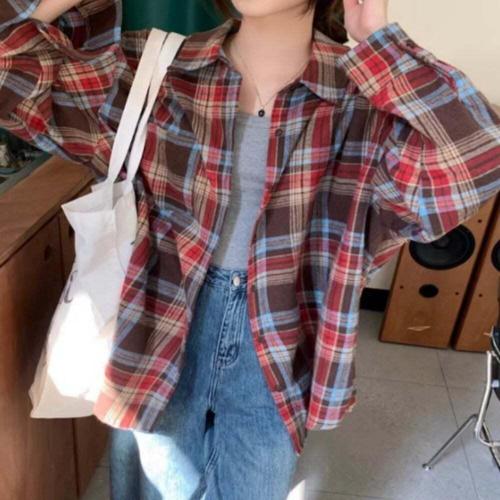 [셀럽하우스]여성 MNOL5604 봄가을 체크블라우스 체츠남방 체크셔츠 2컬러