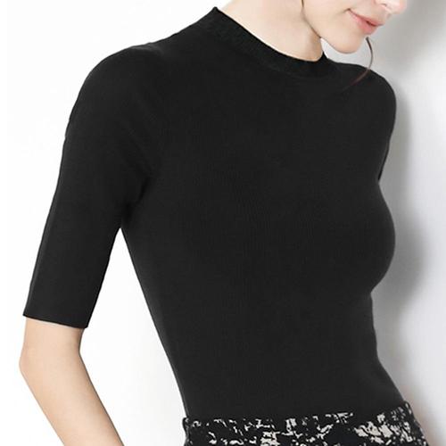 [옷자락]여자 반목 슬림 타이트 가을이너 검정색 칠부 티셔츠_3