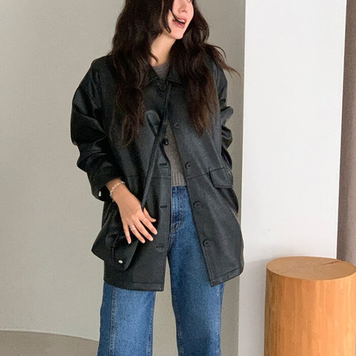 라멜라 / 크로스 절개 레더 자켓 (미니백set)