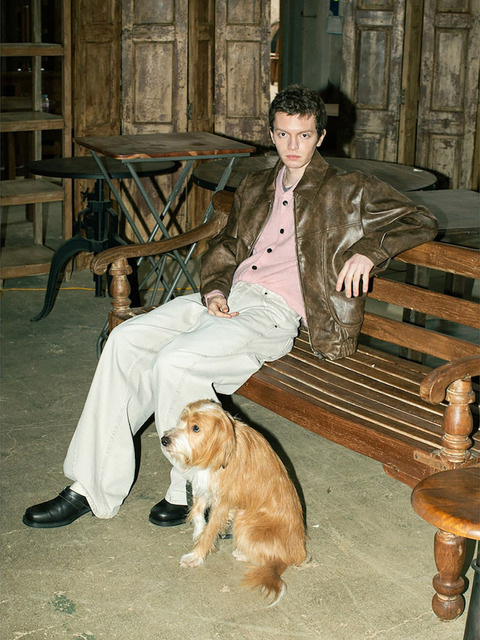 [샌드사운드] (UNISEX) 핸드페인트 페이크레더 점퍼 자켓 - 브라운 (MS5139A20D)