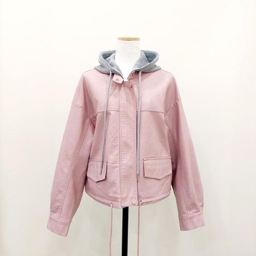 [르니앤맥코이(여성)]니트후드페이크가죽점퍼 ML04JP406HJY