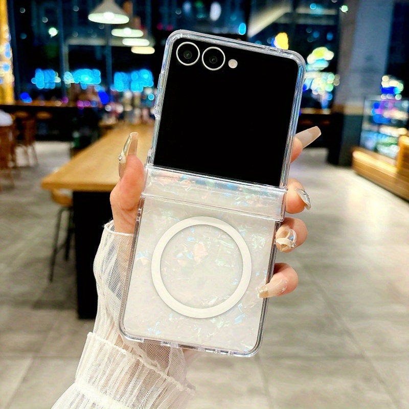 TEMU 여아용 핑크 글리터 자석 케이스 - 삼성 갤럭시 Z 플립 6, Z 플립 5/4/7 폴더블 스크린 보호 커버