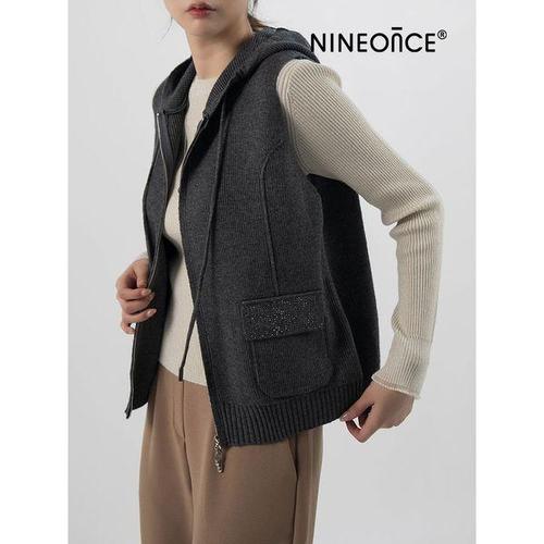 [나인온스]여성 간절기 후드 아우터 큐빅포켓니트조끼