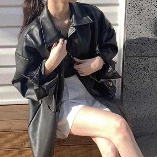 [셀러허브_여성트랜드패션]ONM 간절기 아우터 레더 자켓 루즈핏 롱 자켓 가죽