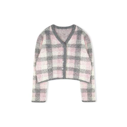 [MADE] (3color)간절기 가을 여성 브이넥 타탄체크 트위드 에우브 니트 가디건 아우터