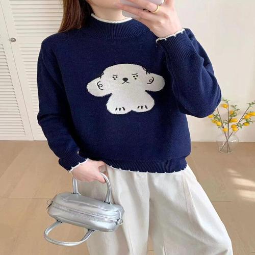 [다잇템][다잇템] 여자 귀여운 라글란 크로쉐 울 FW 강아지 라운드 니트_23199162_588872