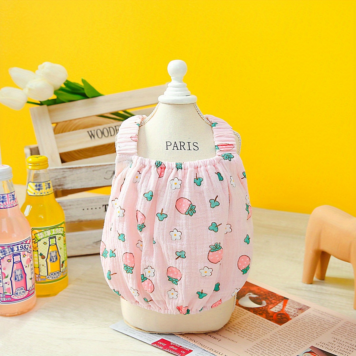 TEMU 귀여운 캐릭터 펫 조끼 - 부드럽고 통기성 좋은 디자인, 강아지 친화적, 착용 간편