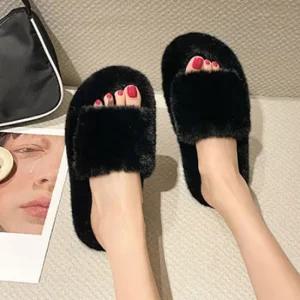 여성을위한 오픈 거북이 플러시 플러시 슬리퍼 가을, 겨울 실내 가정용 따뜻한 슬리퍼 편안하고 통기성 슬리퍼 일년 내내 슬리퍼 거실 슬리퍼 학생 기숙사 슬리퍼