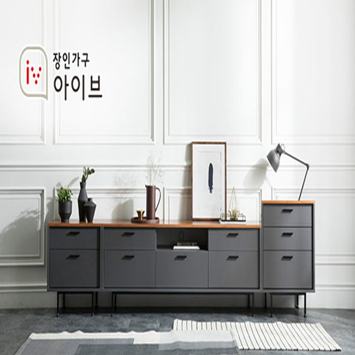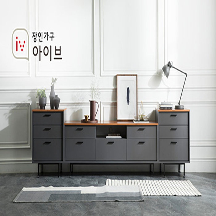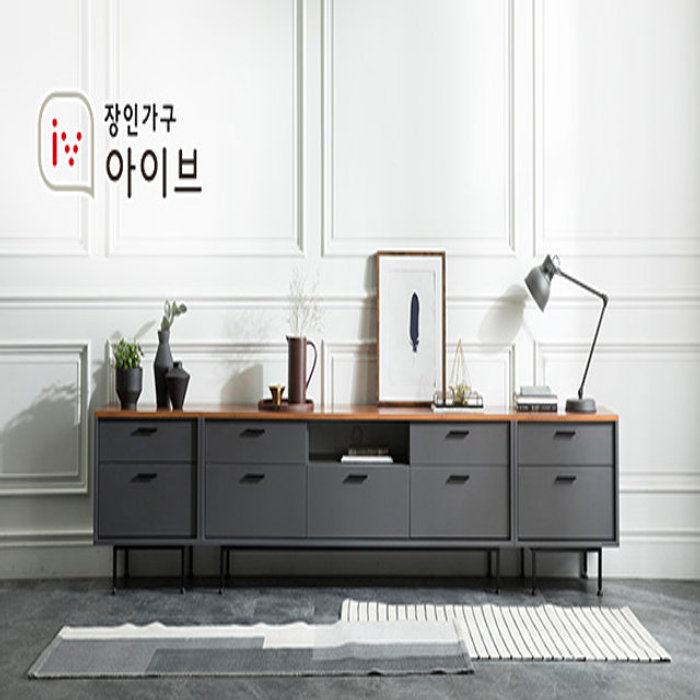 장인가구 [비밀특가] 장인가구 루시퍼 그레이 다용도 수납 3000 거실장 세트A