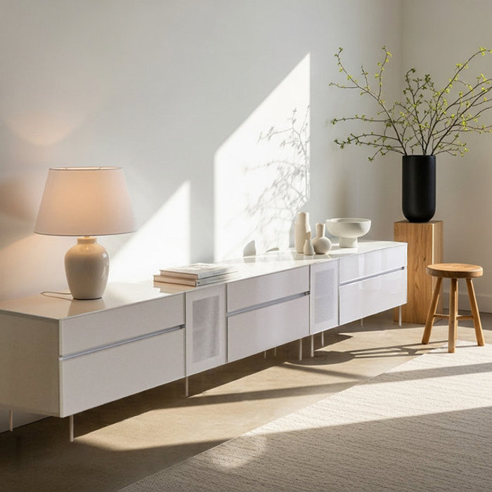 장인가구 [비밀특가] 장인가구 무와 E0등급 하이그로시 3000 거실장 세트 (1200거실장,1800거실장)