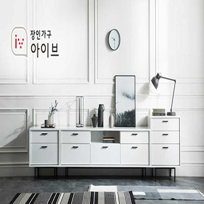 장인가구 [비밀특가] 장인가구 루시퍼 화이트 다용도 수납 3000 거실장 세트A