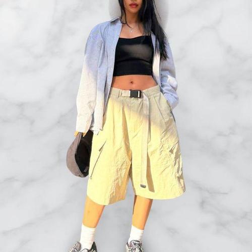 [다잇템]여자 넓은 버클 버큐다 건빵 아메카지룩 반바지