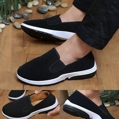 [에이치플러스몰]남자 슬립온 슈즈 남성 운동화 단화 털신발 검정 남자슬립온슈즈