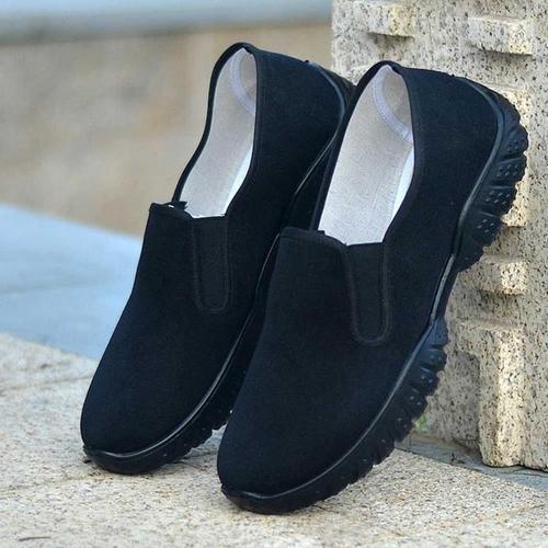 여성 검정 에에 슬립온 아침 걷기 운동화 조깅 신발