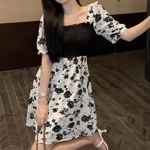 [엄지척]검정 장미 무늬 스퀘어넥 라인 여름 원피스 단정한룩_19914700_667501