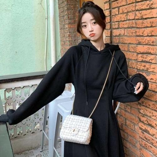 [엄지척]여자 간절기 데이트 룩 심플 검정 후드 롱 원피스_19914477_667501
