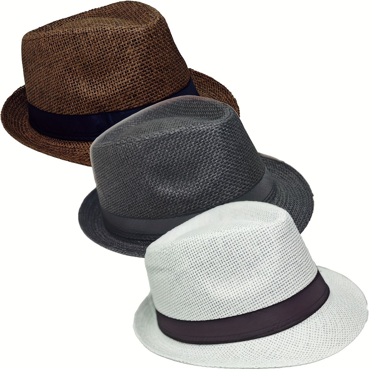 TEMU LERDU 남녀 공용 파나마 모자 3개 세트, 넓은 챙 페도라 스트로우 비치 모자, Fancet 접이식