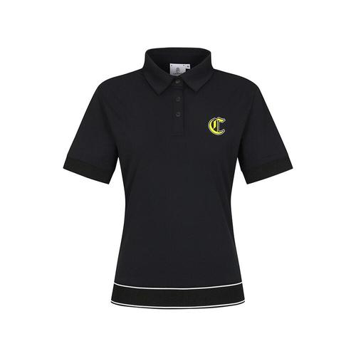 [까스텔바작]여성 블랙라인 등판 아트웍 프린트 반팔 에리 티셔츠_BGEMTS808BK_CJ