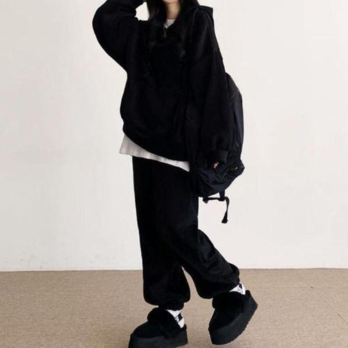 AREVI 겨울 여성 트레이닝복세트 신상 루즈핏 빅사이즈 레저 고급 기질 기모 트레이닝 바지 투피스